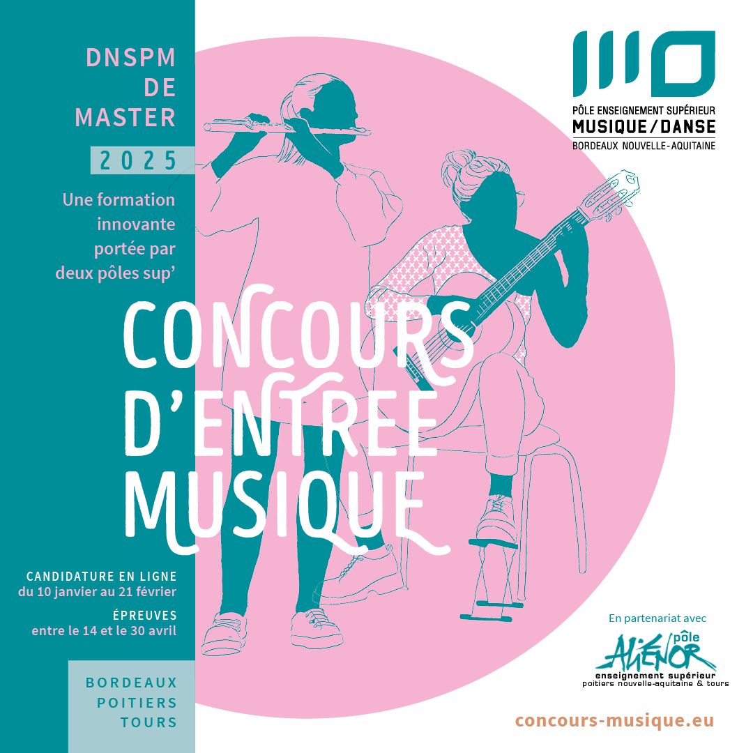 À partir de 2025/2026, le PESMD de Bordeaux et le pôle Aliénor Poitiers - Tours proposent une offre pédagogique unifiée en musique.